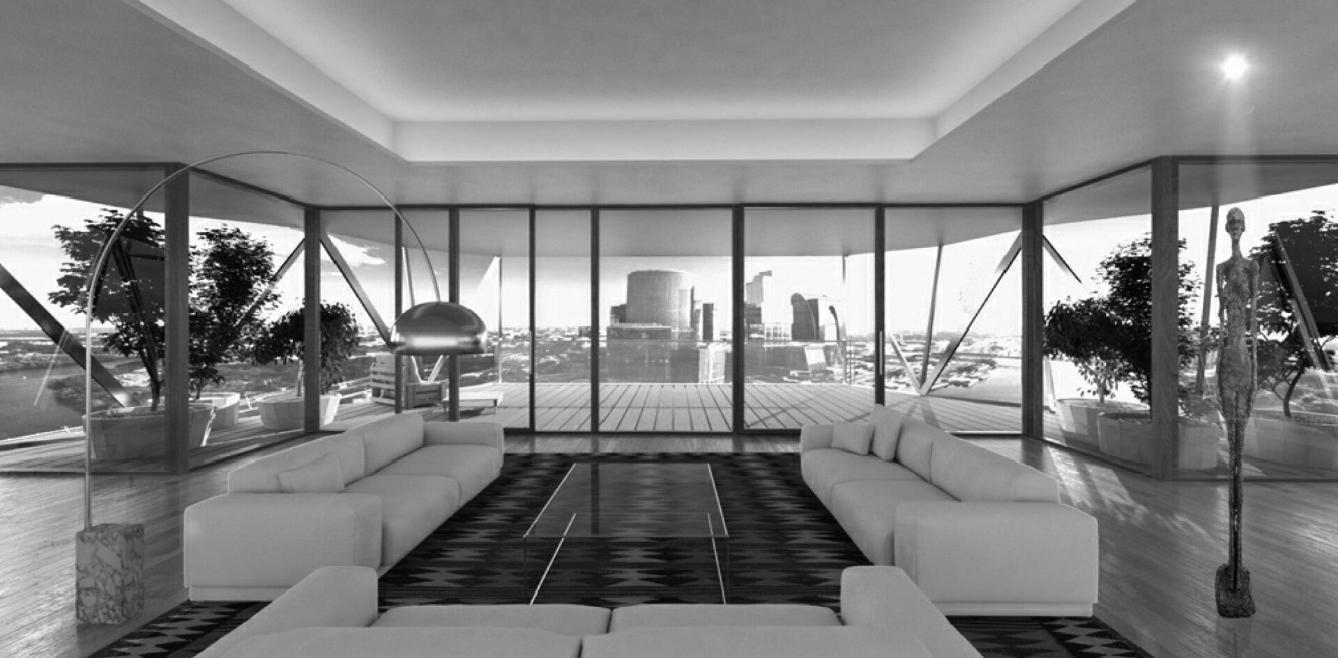 Omogenee per immagine e definizione tecnica, le torri sono declinate in dimensioni e proporzioni differenti. La torre maggiore a prevalente destinazione alberghiera si dispone in diagonale offrendo alla vista dalla città la prospettiva della grande facciata sfaccettata quasi a protezione della coppia di torri residenziali poste, invece, di taglio rispetto alla viabilità d’accesso a mitigarne l’impatto. Il disegno in pianta delle torri permette, grazie al disteso sviluppo longitudinale e all’inclinazione dei lati, di minimizzare i contatti visivi tra di esse liberando da ogni punto lo sguardo verso l’esterno.