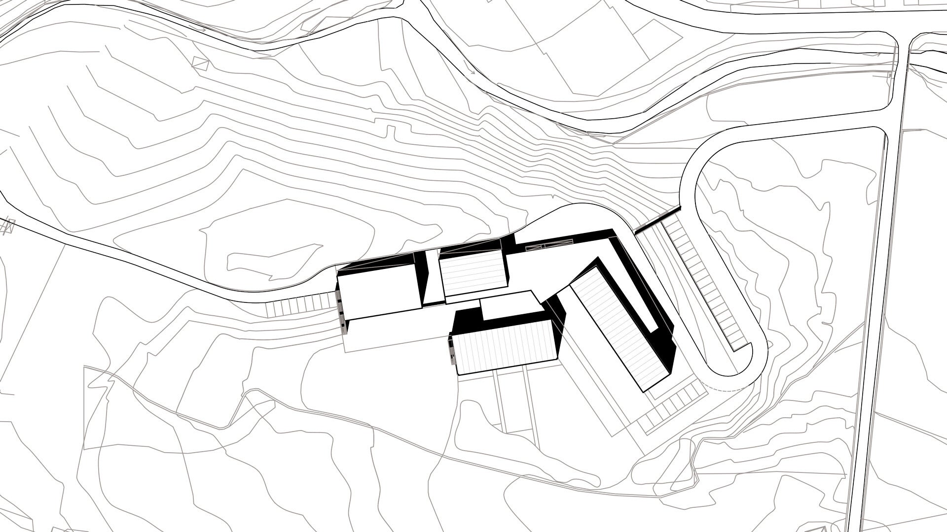 L’orografia fortemente caratterizzata dell’area ed il linguaggio costruttivo locale diventano spunto e guida per un’architettura rispettosa del luogo ed al contempo efficace nel rispondere alle esigenze della funzione.
